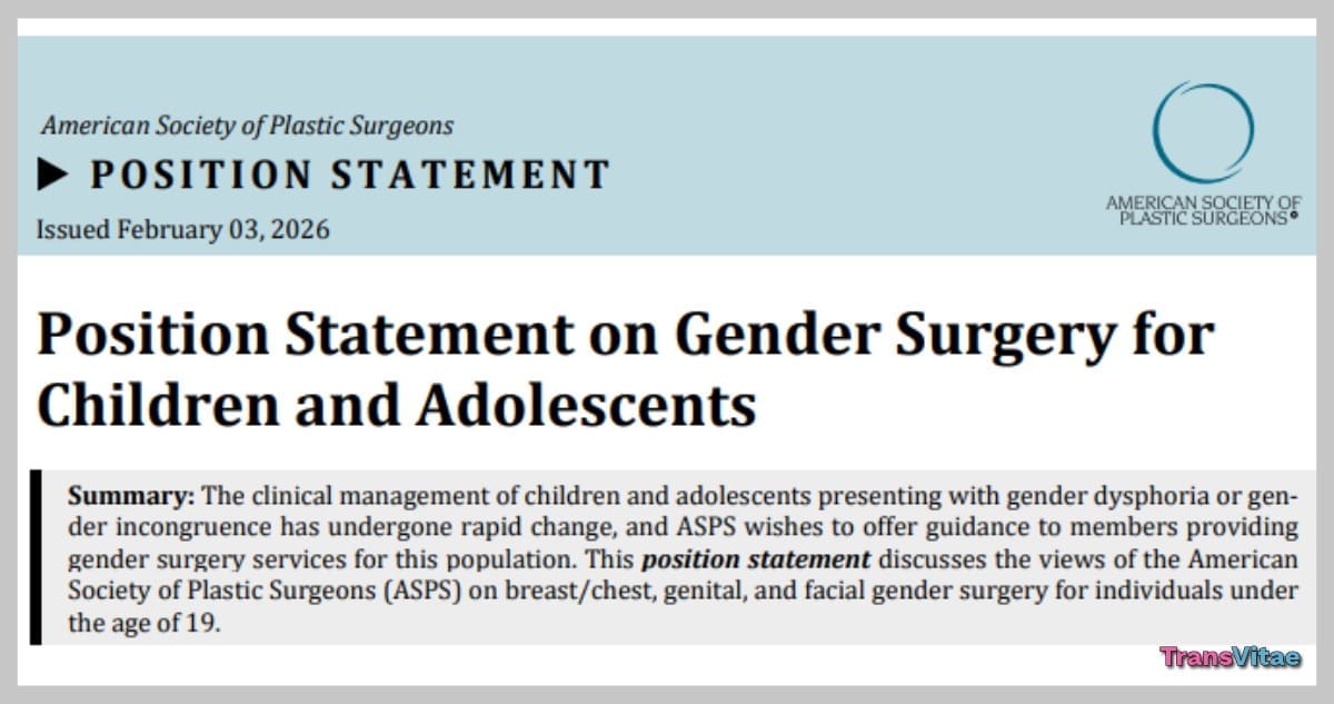 A leading U.S. plastic surgeons group is recommending that gender-related surgeries for minors be delayed until at least age 19, arguing that surgery alone lacks sufficient evidence of long-term benefit for adolescents. The guidance emphasizes individualized clinical judgment and stops short of opposing gender-affirming care broadly. It also follows controversial federal reports whose trans health findings have been criticized for relying on flawed studies.