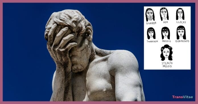 The meme arranges these labels in what resembles a hierarchy, implying a progression from those who are easily “clocked” to those who are considered indistinguishable from cisgender women.